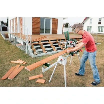 Der Arbeitstisch PTA 2400 stellt dank universeller Aufnahme die perfekte Ergänzung zu Bosch PCM Kappsägen dar. Der Tisch ist höhenverstellbar und ermöglicht somit ergonomisches und stabiles Arbeiten auf angenehmer Arbeitshöhe.