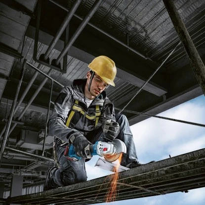 Der kompakte Bosch Professional Akku-Winkelschleifer GWS 18 V-7 eignet sich für Trenn- und Schleifarbeiten von Metall, Fliesen oder Mauerwerk ebenso wie zum Entrosten und Polieren von Oberflächen.