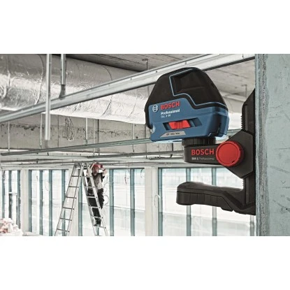 Mit der zusätzlich erwerbbaren Universalhalterung Bosch BM1 Professional können Sie den Linienlaser problemlos und flexibel mit Schrauben, Magneten oder auf dem Stativ montieren. Durch die Klammer ist die BM1 ideal für Deckenanwendungen. Zusätzlich verfügt die Universalhalterung über eine Höhenverstellung mit Arretierung zum sicheren und präzisen Ausrichten des Lasers.