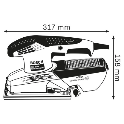 Der Schleifer ist mit einer Staubbox mit integriertem Bosch Microfilter System ausgestattet. Durch die effiziente Staubabsaugung arbeiten Sie nahezu staubfrei. Zudem überzeugt die Schleifmaschine durch eine robuste Bauweise. Das verstärkte Klammersystem verspricht Ihnen eine lange Lebensdauer.