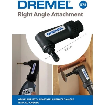Der Dremel Winkelvorsatz 575 erreicht in Kombination mit dem Dremel Multifunktionswerkzeug (separat erhältlich) alle schwer zugänglichen Stellen beim Fräsen, Bohren, Schleifen und mehr. Dank dem Kupplungssystem, das den Einsatz in 12 verschiedenen Richtungen zulässt, kann in fast allen schwierigen Positionen gearbeitet werden. Einfach Winkelvorsatz mit dem Schnellanschlusssystem auf das Multifunktionswerkzeug schrauben, und schon kann es losgehen.