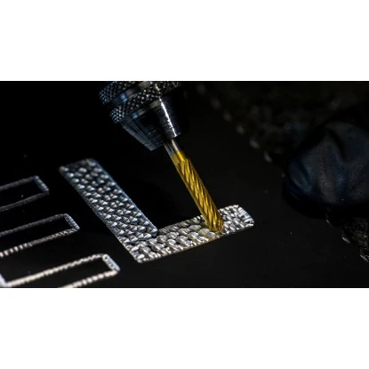 Das Dremel Wolframkarbid-Fräsmesser 9903DM aus Wolframkarbid ist mit Titannitrid beschichtet. Dadurch hält es 2 Mal länger als unbeschichtetes Standard-Zubehör und es entfernt 20 % mehr Material als das reguläre 9903.