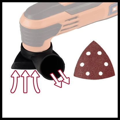 Die 12-fach einstellbare, magnetische Werkzeugaufnahme ermöglicht einen einfachen Wechsel und die optimale Positionierung des Zubehörs. Der Schalter mit Feststellfunktion erleichtert langwierige Arbeiten. Das Multifunktionswerkzeug hat einen Oszillationswinkel von 3° und liegt dank seiner schlanken, ergonomischen Bauform mit Softgrip-Flächen jederzeit angenehm und sicher in der Hand. Die mitgelieferte Staubabsaugvorrichtung ist werkzeuglos montierbar.