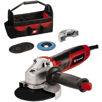 Zum Winkelschleifer-Set gehören drei Trennscheiben und der Lamellenschleifteller. Die Lieferung erfolgt im praktischen Einhell Bag 45/22.