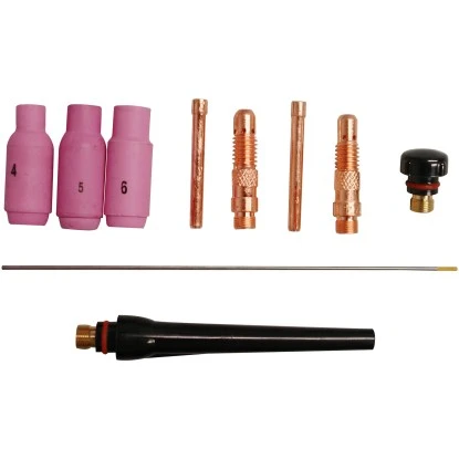 Mit dem WIG-Brenner können Sie den Schweißstrom und die Schutzgaszufuhr präzise steuern. Das 4 m lange Massekabel ermöglicht Ihnen eine gute Erreichbarkeit des Werkstücks. Die Klemme sorgt für eine sichere Verbindung und einen stabilen Massekontakt. Die 1,6 mm dicke WIG-Nadel ist eine gängige Größe für verschiedene Schweißanwendungen.