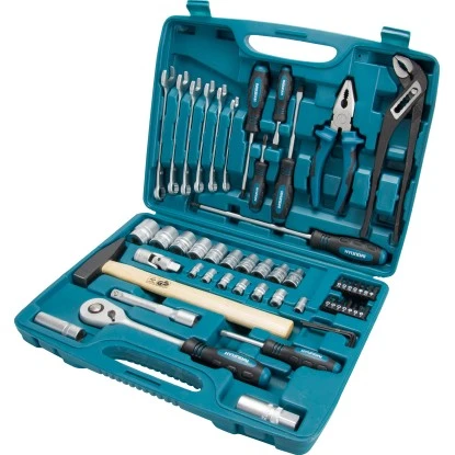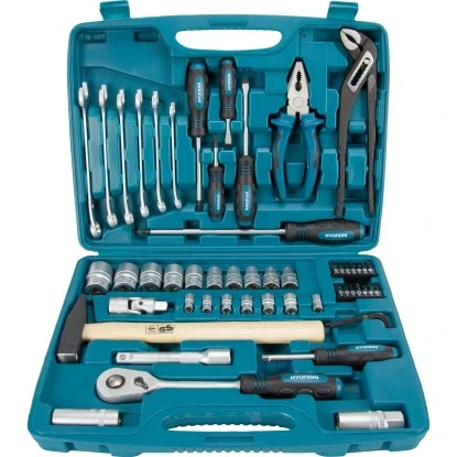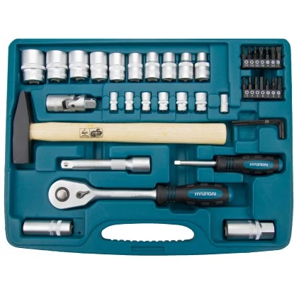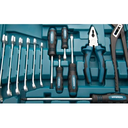 Das professionelle Hyundai Werkzeugset K56 CrV-Stahl besteht aus 56 qualitativ hochwertigen Teilen und ist aus hochfestem, langlebigem Chrom-Vanadium-Stahl gefertigt.