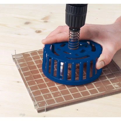 Der LUX-TOOLS Fliesen-Kreisschneider mit Korb ist speziell zum Schneiden von Löchern in weichgebrannte Kacheln und Fliesen. Er hat einen verschiebbaren Ø von 30 mm – 90 mm.