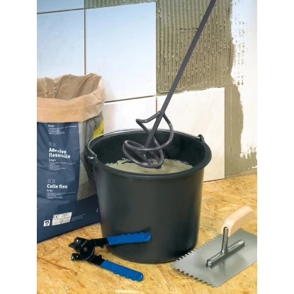 Der LUX-TOOLS Mörtelrührer Comfort bietet Ihnen ein praktisches Rührwerkzeug für Maurer- und Putzarbeiten. Er überzeugt durch eine zuverlässige Qualität und punktet mit einer langen Lebensdauer. Verwenden lässt sich der Mörtelrührer für Fliesenkleber, Fertigmörtel und Estrichbeton. Dabei eignet er sich für Bohrmaschinen ab einer Leistung von 700 W und einer Mischmenge zwischen 10-15 kg. Das Werkzeug hat eine Länge von 590 mm und misst einen Ø von 105 mm.