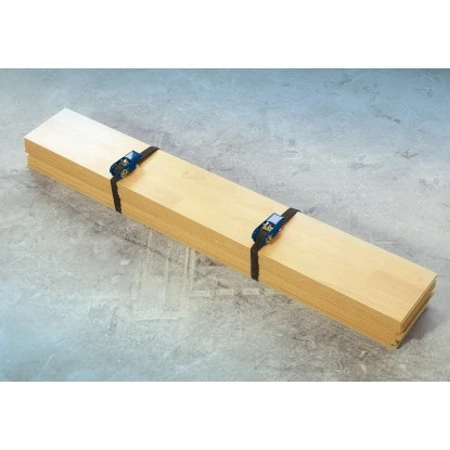 Die LUX-TOOLS Parkettverlegehilfe ist zum Spannen von Parkett und Laminatreihen geeignet. Gurt und Ratsche sind auch als Spanngurt nutzbar. Das Band besteht aus Polypropylen.