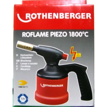 Die Rothenberger Industrial Lötlampe RoFlame 1.800 °C ist ein Kartuschenlötgerät mit Piezo-Zündung zum Weichlöten sowie zum Auftauen von Leitungen, Reparatur- und Servicearbeiten im Sanitär-, Heizungs-, Kälte- und Klimabereich. Zudem ist mit der Lötlampe die Grillanzündung möglich. Sie kann außerdem Unkraut chemiefrei beseitigen und als Küchenhelfer verwendet werden. Die Lötlampe ist vielseitig einsetzbar und wird mit einer Gaskartusche C 200 betrieben.