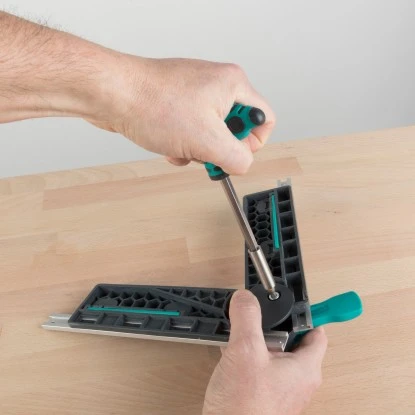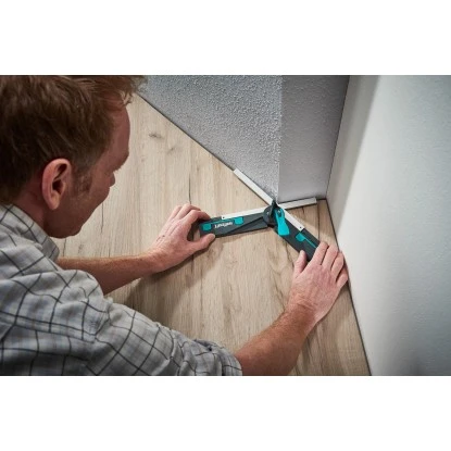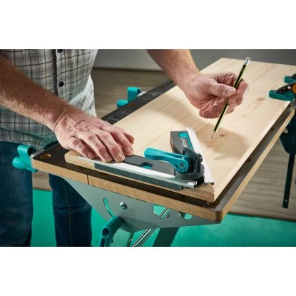 Die Wolfcraft Winkelschmiege für Kapp- und Gehrungssägen ermöglicht Ihnen das präzise und komfortable Abgreifen von Winkeln mit anschließender Übertragung auf die Kapp- und Gehrungssäge. Dazu schieben Sie im ersten Schritt die beiden Kunststoffschenkel in die Wandecke und richten sie entlang der Wände aus. Mit dem Exzenterhebel fixieren Sie die Position. Der Hebel ist so konstruiert, dass er auch in engen Arbeitsbereichen gut zu bedienen ist. Im nächsten Schritt bringen Sie die Winkelschmiege mit den beiden integrierten Magneten am Sägeblatt an und richten den Winkel an den verstellbaren Anschlägen der Säge exakt aus. Beim Schneiden sorgt die automatische Winkelhalbierende für den richtigen Gehrungsschnitt, das erleichtert die Arbeit und senkt das Fehlerrisiko gegen Null. Zusätzlich können Sie mit den ausziehbaren Eckentastern auch Außenecken komfortabel abgreifen. Auch der Anschlag ist ausklappbar, das erleichtert Ihnen das Anzeichnen von Winkeln direkt auf dem Werkstück.