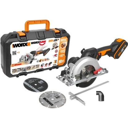 Die Worx Mini Handkreissäge WX531 überzeugt durch Leistungsfähigkeit, hohen Komfort, Funktionsreichtum und vielseitige Einsetzbarkeit. Die bürstenlose Motorentechnologie ermöglicht eine 50 % längere Laufzeit, bis zu 25 % mehr Leistung und eine zehnmal längere Lebensdauer im Vergleich zu üblichen Akku Kreissägen. Darüber hinaus begeistert die leistungsstarke Kreissäge mit einem praktischen LED-Licht, welches auch an Stellen mit weniger Licht präzise Ergebnisse ermöglicht. Die Säge eignet sich ideal für Anwendungen im ganzen Haus – Schneiden von Holz, Metall, Plastik und Fliesen ist für die robuste Kreissäge kein Problem.